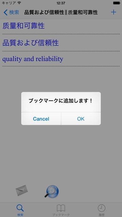 ブックマーク機能が搭載されており、よく使う用語などを登録しておくことができます。また一度閲覧した用語は、履歴に残るので後で見返す時にも分かりやすくなっています。