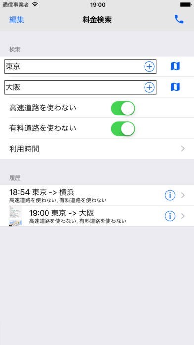 出発地と目的地を入力することによって、予想運賃を表示してくれる