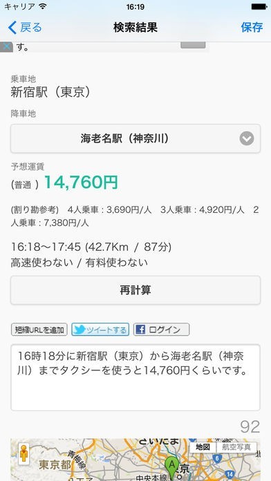 タクシー運賃検索のスクリーンショット