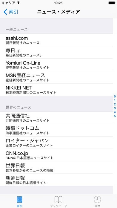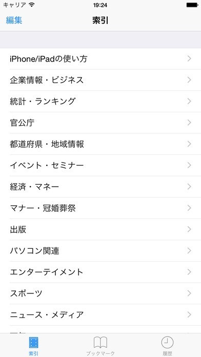 7、索引、ブックマークと履歴には各項目を下記の21カテゴリーで分類されています。