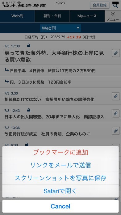 3、各ウェブページへのリックをメールで送信、またワンタッチでスクリーンショットを写真に保存することができます。