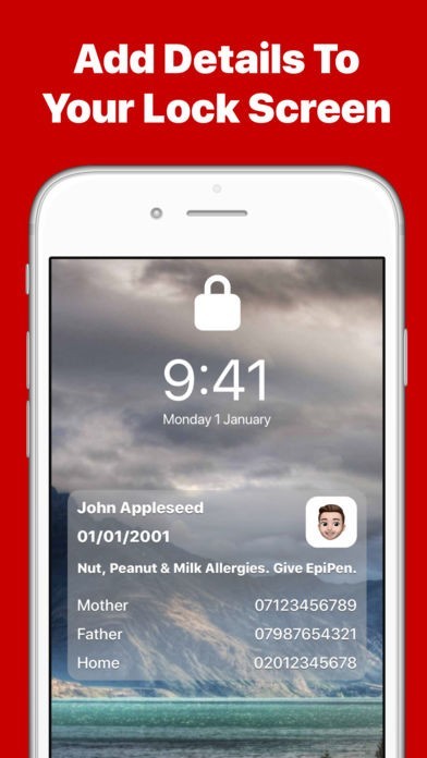 A lock screen wallpaper can also be created which allows your medical conditions to be displayed directly on your lock screen - without unlocking your device.