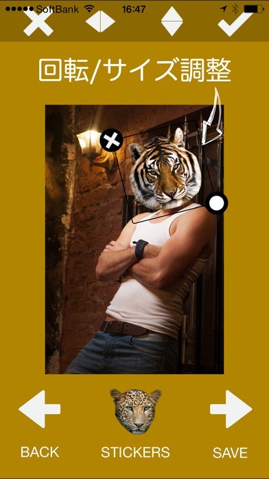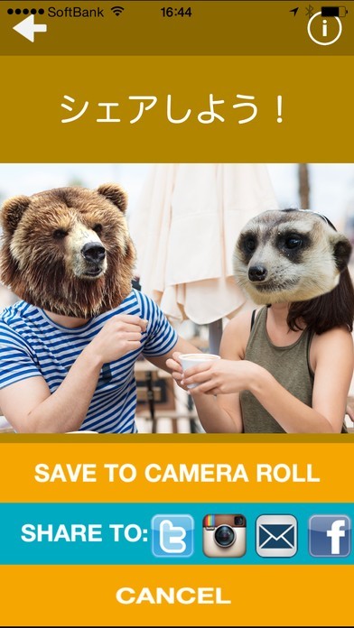 SNSに写真をアップしたいけれども顔出しはしたくない、と思ったことはないでしょうか。そんな時に便利なのが「アニマル顔カメラ」です。撮った写真の顔部分に、動物の顔をあてはめていくことができます。ライオン、コアラ、カバなど60種類以上のステッカーが搭載されているので、自分のイメージにあったものを選びます。選んだステッカーは拡大・縮小機能がついているので、大きさも自由に変更することができます。他にも、上下左右の向きも変えることが可能です。フェイスブックなどのSNSとのシェア機能も搭載されているので、完成した写真を友人らに送っても楽しいです。
