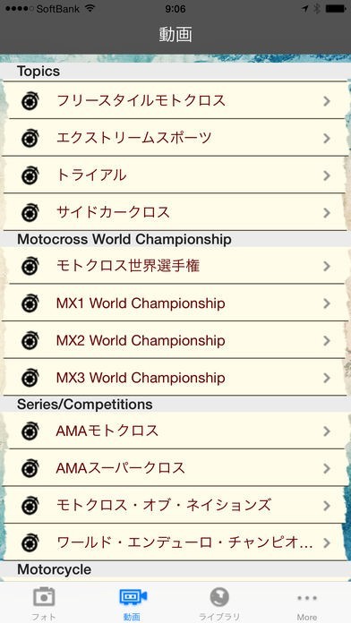 写真、動画の他にも、モトクロスライブラリなど、さまざまな機能をお楽しみいただけます。