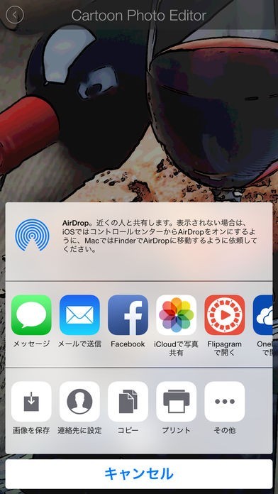 絵画アートカメラは、写真を撮影するとフィルターの効果で絵画やアートのようになります。絵画モードやスケッチモード、ドットなど8種類のフィルターがあります。好きなフィルターを選択してから撮影ボタンを使います。フィルターで加工された写真が出来上がるので、カメラ好きで風景などの撮影に向いています。 写真は、フォトライブラリへ保存できます。コピーしたり、プリントも可能です。ポスターに使用するときなどにも便利です。 共有機能で、メールで送信したり、Facebookなどでシェアも簡単にできます。