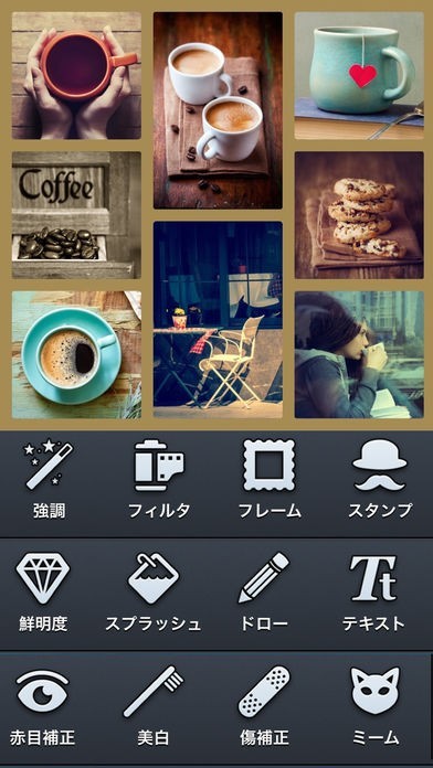 フレームレイアウト機能でお洒落なコラージュを手軽に作成。フィルター機能で写真をシックに変身させよう!