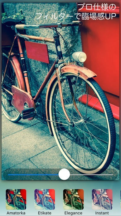 いままで高価なフォト加工ソフトウェアでなければできなかったような写真編集が簡単にできるようになりました。使い方は超シンプル。好きなフィルターを選んで撮影するだけ。写真をレトロに加工するプロ仕様のワンタッチフィルターが用意されています。