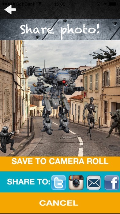 App Storeより引用***ほんの数回タップするだけで、あなたの写真に超リアルなロボット兵器達が登場!***