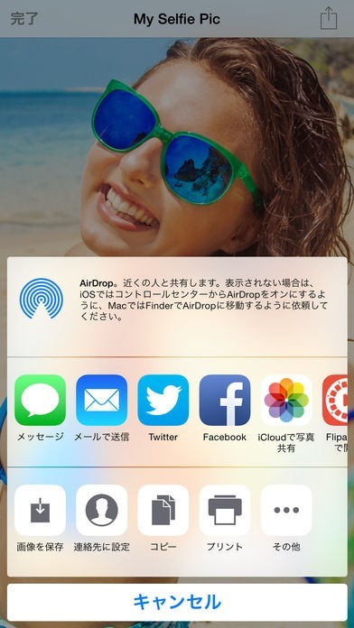 -> TwitterやFacebookに投稿したり、メールで友達に送信