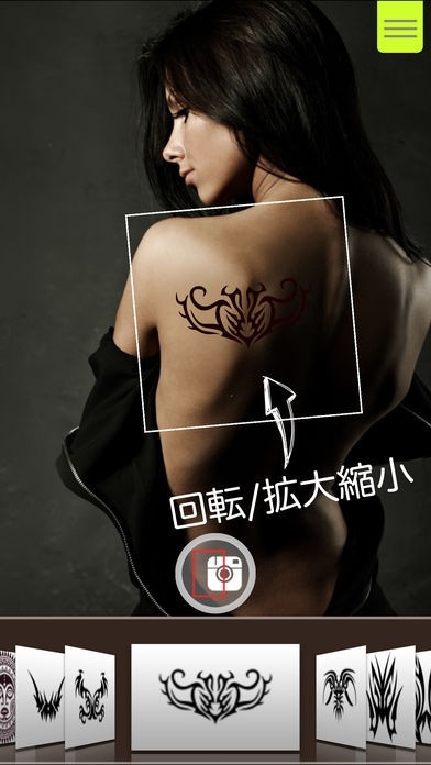 タトゥーカメラは、タトゥーを自由自在にフォト上に設置できるカメラアプリです。タトゥーデザイナーがデザインしたクールなタトゥーが満載!サイズや方向、濃淡、カラーなど、カスタマイズはパターンは無限大!