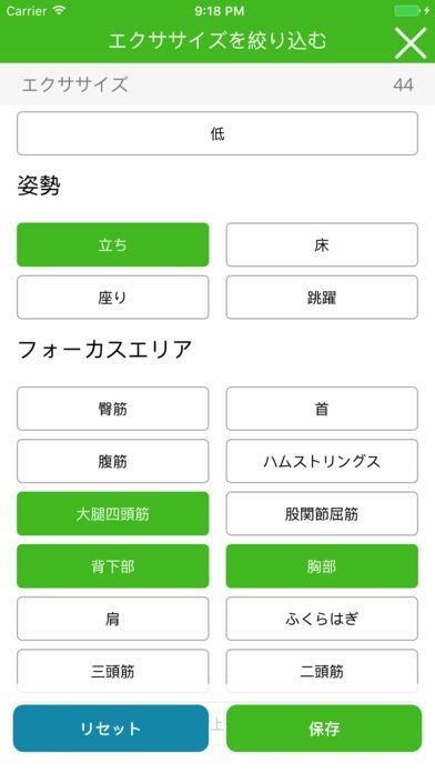 難易度や鍛えたい部位などから運動を探せる