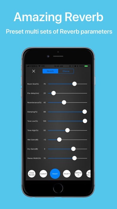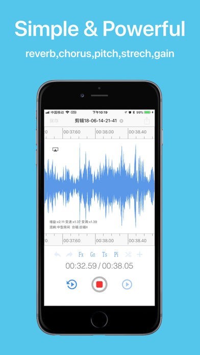 このアプリには、ダウンシフト、アップシフト、リバーブ、ゲインなどの豊富なオーディオエフェクターがついています。エフェクトをかけてリアルタイムプレビューで確認しながら編集できます。