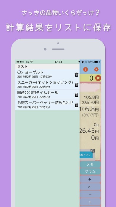 かわいくて使いやすいだけじゃなく、お買い物がお得になる電卓アプリが買い物上手です。お買い物に行く前にスマホにダウンロードしておけば、全部でどれくらいの支払いになるかがすぐに計算できます。内容量や全体の価格に応じて計算することもできるので、目の前の商品の内どちらがよりお得なのかということもすぐに計算可能です。買いたいもののリストをアプリ内にメモとして保存しておけば、リストと見比べながら予算に合わせて効率よく買い物ができます。
