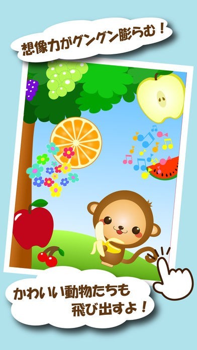 App Storeより引用・フルーツをタッチするだけ!楽しい仕掛けが盛りだくさんの幼児用ゲームです!