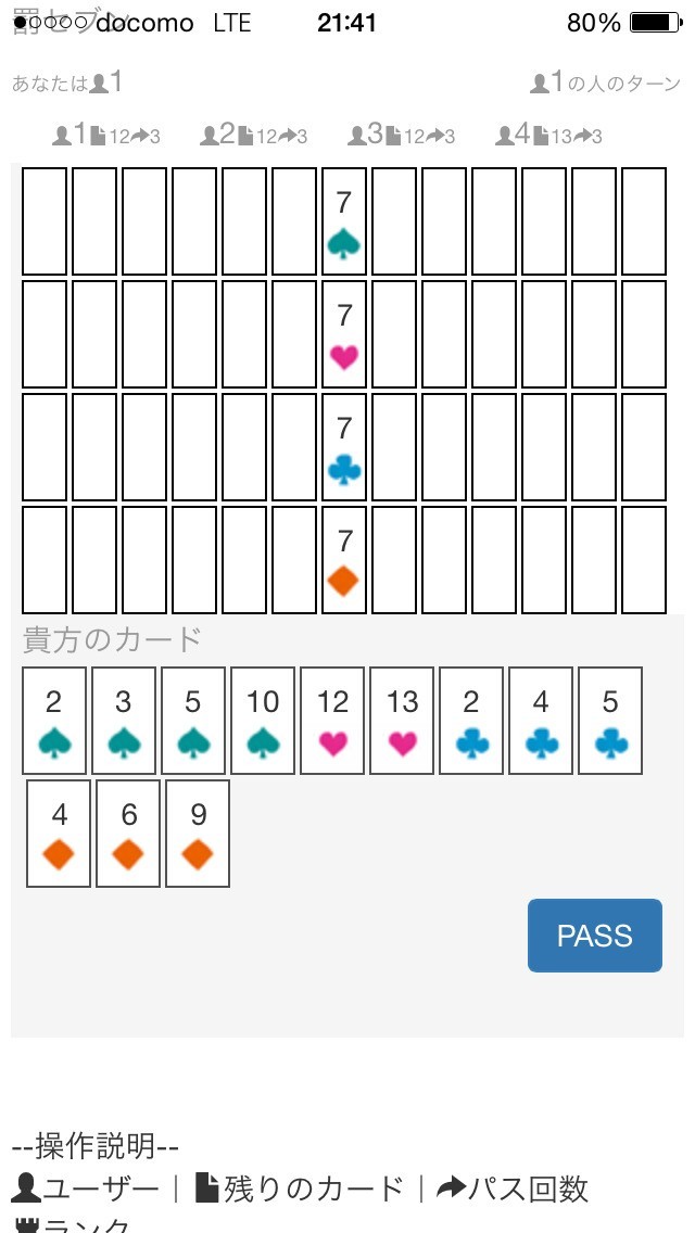 App Storeより引用みんなで出来る七並べカードゲーム。