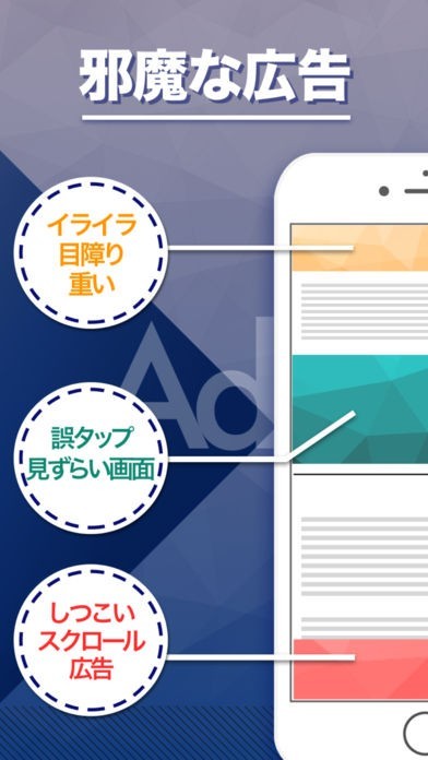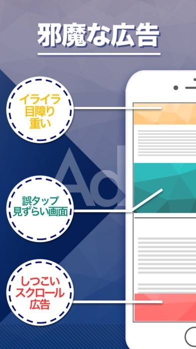App Storeより引用--------------開発者一同、広告を嫌がる自分たちの悩みから開発に至ったため、特定の広告主だけ広告を表示するような対応は一切しませんので安心してお使いください----------------