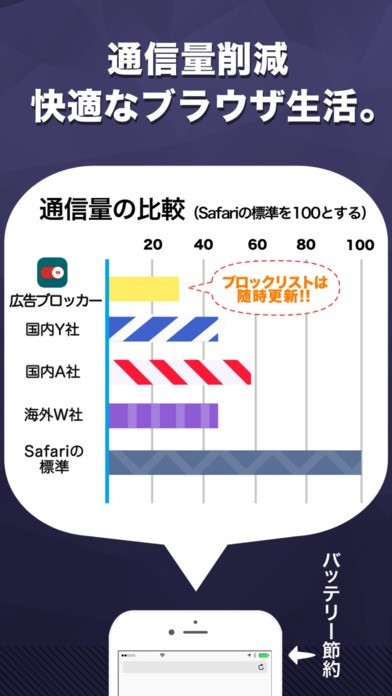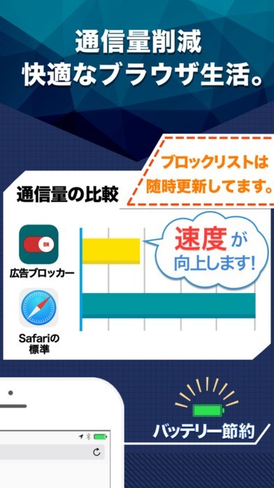 広告をブロックすることで余分な誤タップを減らします。また通信量も減らすことで通信速度をあげることができます。