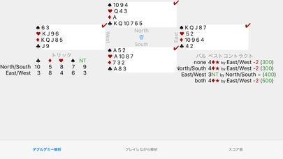 ブリッジのゲームやアプリにはダミーシステムが付いているのは普通ですが、このアプリはあのbo hanglud氏のダブルダミーソルバー理論に基づいて分析、解析機能が付与されているのは嬉しいところです。対話しつつダミーシステムを活用し、ベストコンストラクトを探してみましょう。実力をあげる手助けになることは間違いないです。