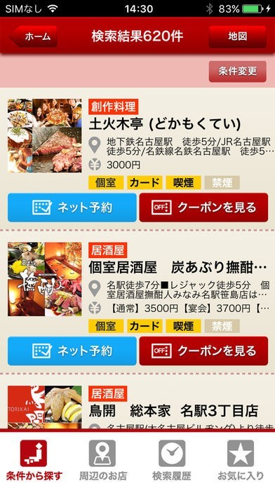・履歴検索、お気に入り機能も完備。別日に見ても、気に入ったお店がすぐ見つかります