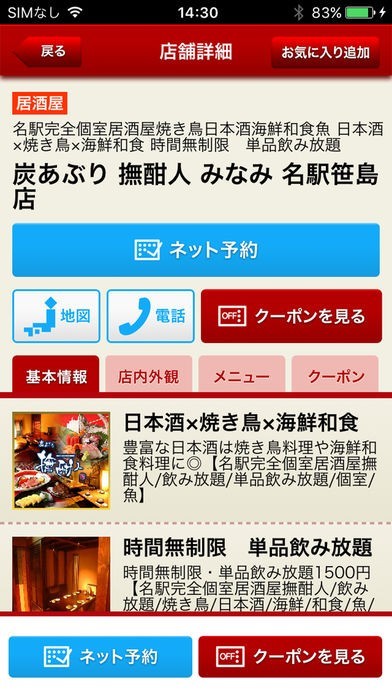 ・せっかく入った名古屋グルメなお店を出て、またグルメ情報を検索するのが面倒、、名古屋グルメでクーポンの付いた検索アプリを探している方!