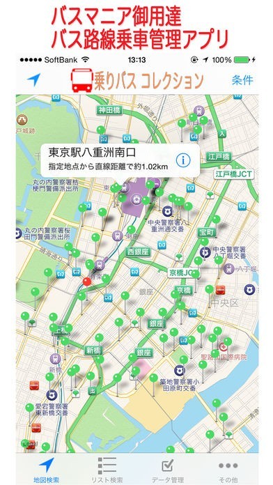 民営から第三セクター、自治体が運営するコミュニティバスまで日本全国の路線バスを網羅した路線バス乗車記録管理アプリです。乗車した停留所を記録できるのはもちろん、検索機能を用いて現在地や駅から近い停留所を探すこともできます。