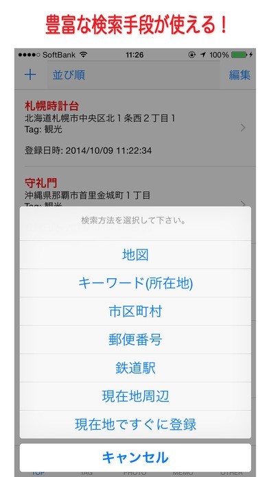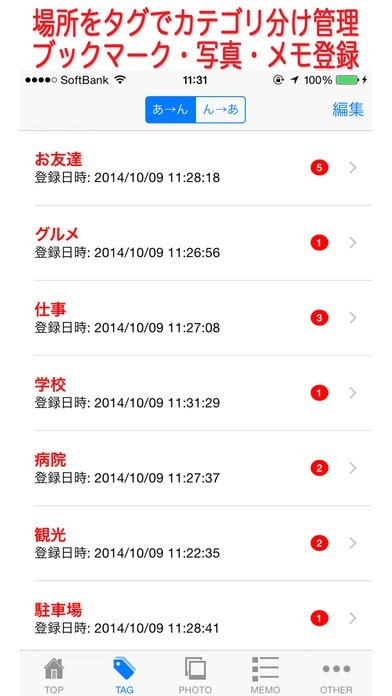 このアプリを使うことによって、覚えておきたいような場所についてしっかりと記憶することができるような手段を提供してくれます。 プラスボタンから現在の位置情報をメモや写真とともに登録しておくことが出来ます。 他にもたくさんの検索手段が用意されていて、最適なものを選べばお目当てのものを見つけ出すことが出来る可能性が高まります。 さらには、タグによって、美味しかった飲食店のみをまとめたり、友人の家だけをまとめてタグ管理することが出来ることからあとから見やすく出来ます。