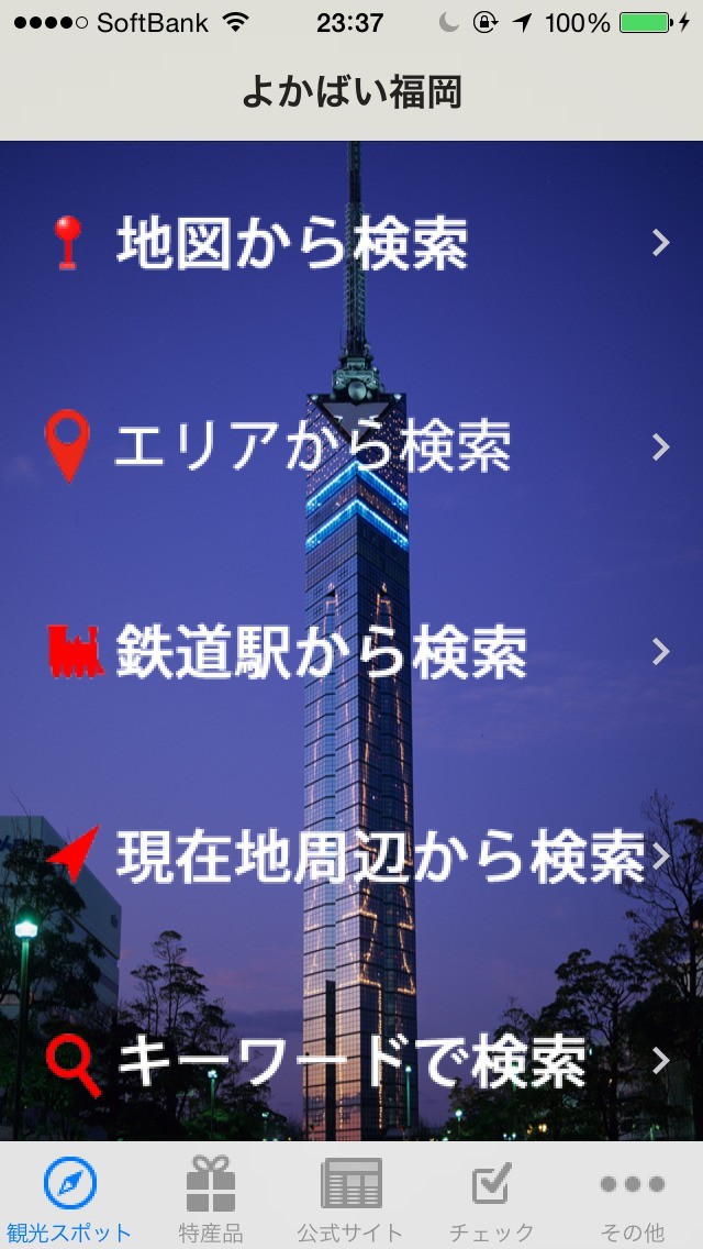 現地取材した観光スポットを中心に、福岡県内907箇所の観光スポットのほか、観光スポット周辺の宿泊施設、グルメ店舗を検索できます。