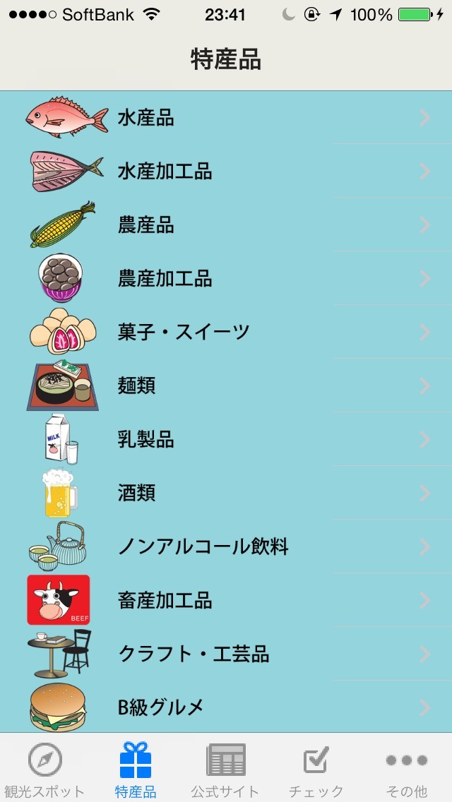 (3) スタンプラリー帳のように使えるiOSアプリ「道の駅ナビ」を起動し、観光スポット周辺の道の駅の検索結果を表示できます。