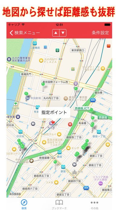 マップ上から周辺の飲食店をピックアップ出来るスマホアプリ