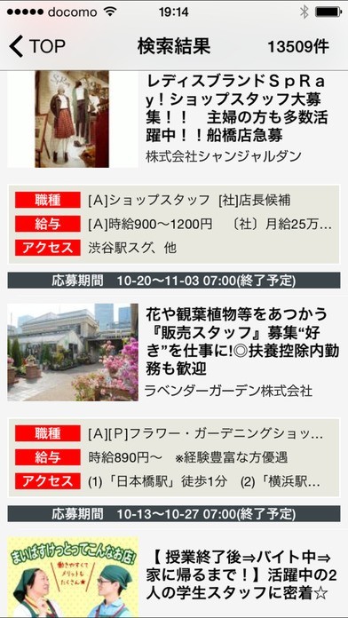 App Storeより引用いつでもどこでもスマホで最新バイトを検索!