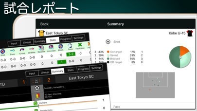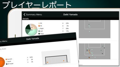 シュートの成功率やインターセプトの回数等を詳細に記録出来るようになっています。グラフの表示に対応していて、集計しているデータや記載した情報も可視化しやすいでしょう。