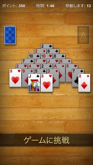 App Storeより引用ピラミッドは古典的なクロンダイクやフリーセル、スパイダーソリティアに加わった新たな仲間です。もしかしたらWindows™ソリティアの延長としてご存知かもしれません。とってもクールなゲームですが、他のソリティアゲームと比べるとはるかに簡単です。