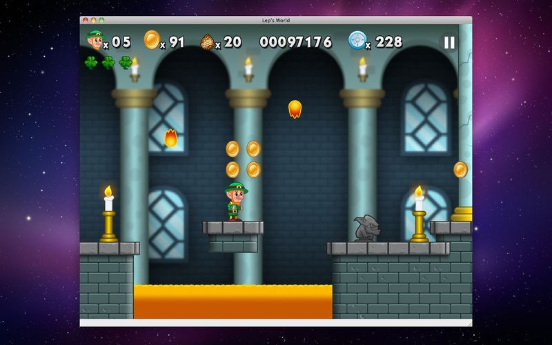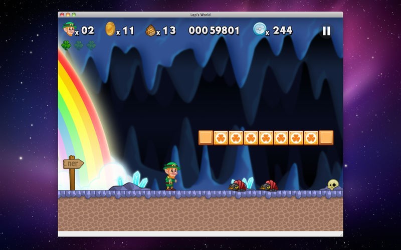 Lep the Leprechaun has lost his gold! Help him to jump and run through the beautiful worlds of Lep's World to find his gold. Be careful! There are many angry monsters. They want to stop Lep in each world. If you collect a cloverleaf Lep's health grows. But you are not secure with more health. An angry bee could hit him. An easy and smooth control makes it very funny and to jump or run.