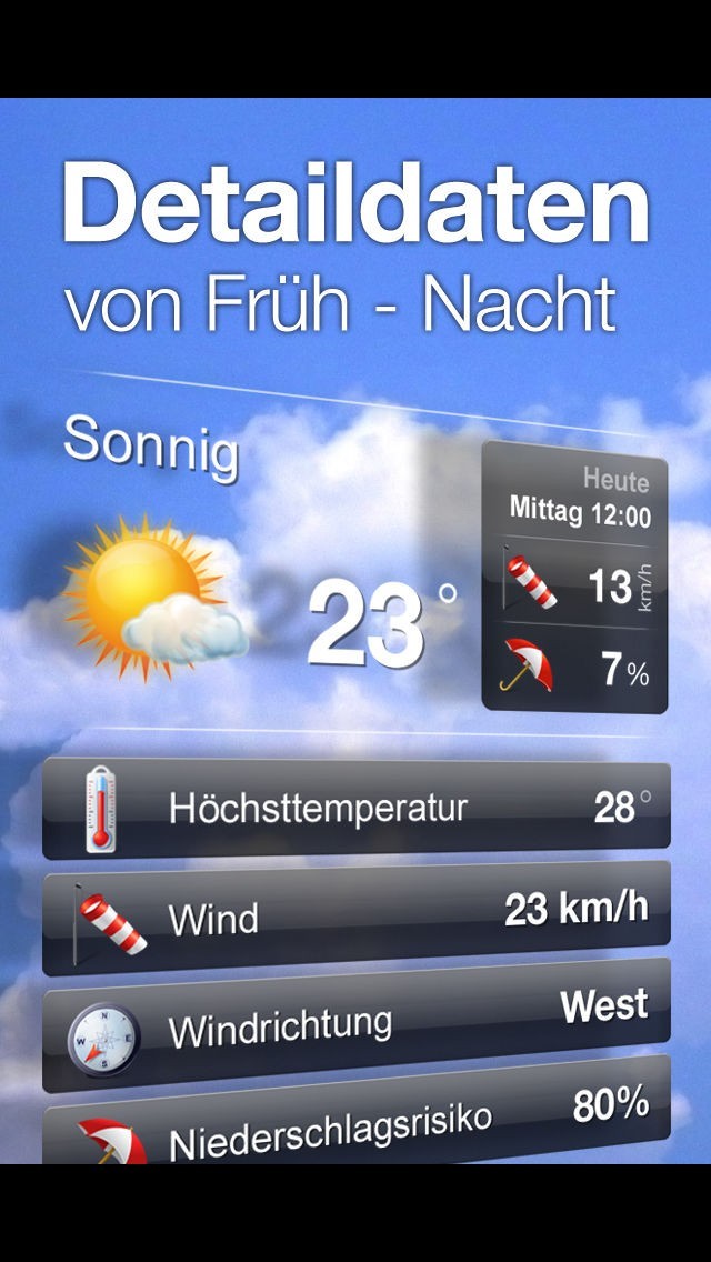 + Früh-, Mittag-, Abend- & Nachtprognose