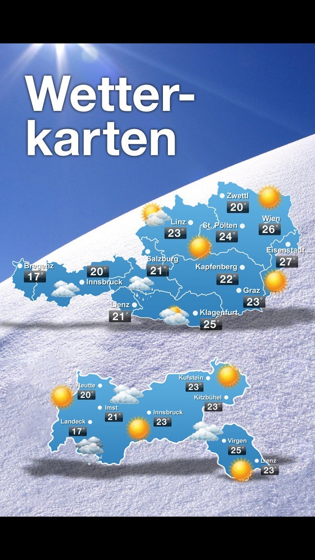 Die Österreich-Wetter-App mit 8 Tages-Prognose und örtliche Wetterwarnungen für alle 20.000 Orte Österreichs. Inklusive Österreichwetter und alle Bundesländerkarten im Querformat.