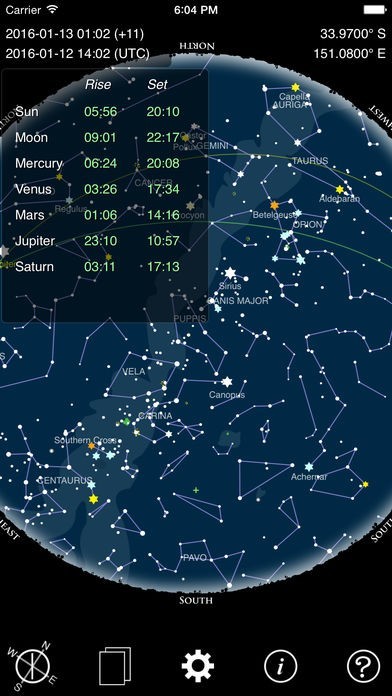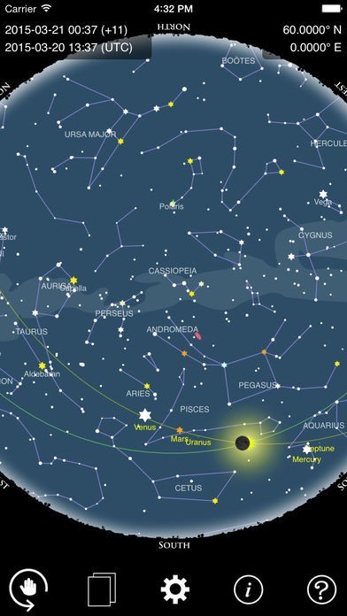 スマートフォンの方位磁針に対応しているので、スクリーンに映し出される星座とスマートフォンの上部が向いている空と星座の位置をリンクさせることができるので、星座の位置を特定することが出来ます。