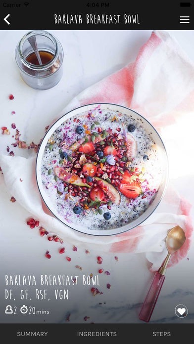 ナッツフリーやグルテンフリーのメニューを始め、健康的で美味しい朝食・ランチメニューなどの詳しいレシピが紹介されています。これまで作った経験のない人でも簡単に作れるメニューも多く紹介されています。