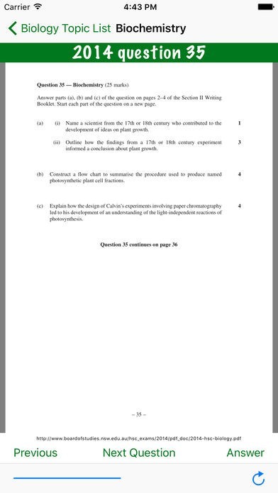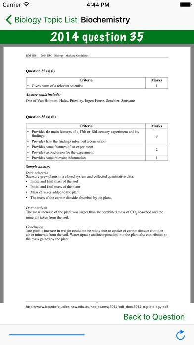 App Storeより引用Past HSC Biology allows you to start studying from past NSW HSC Biology exams, as soon as you have completed at least one topic of the course. Choose a syllabus topic and a random past HSC question from that topic is loaded. Check the answer, load a new random question, or pick a new topic.