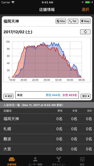 JIS officialでは、相席BER・JISの営業時間や店舗の場所を確認できる他、男女の来店状況のグラフによる確認などが可能で、ポイントサービスを当アプリで受けることもできます。