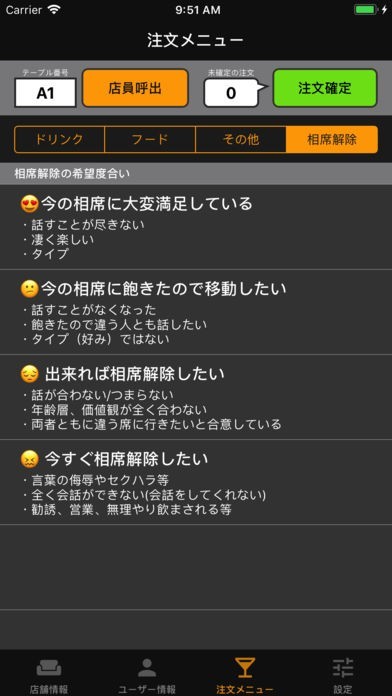 相席BER・JISのオーダーを自分のスマートフォンでできる