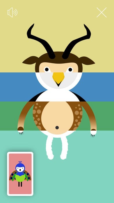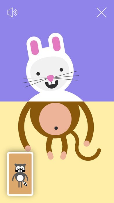 もっとも簡単なレベルの場合は上半身と下半身の二枚のパネルの組み合わせで動物を見つけます。パネルの数を3枚、4枚と増やしていくことでスムーズにレベルアップすることが可能です。