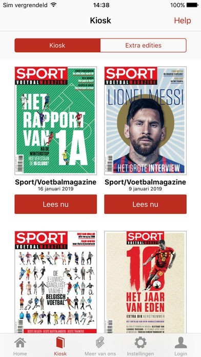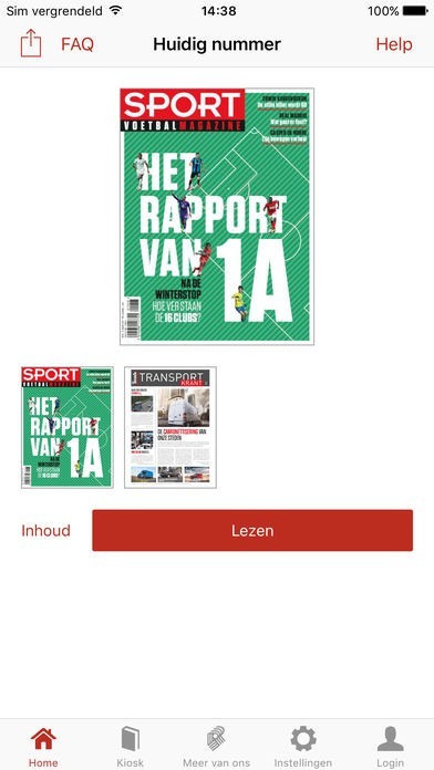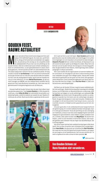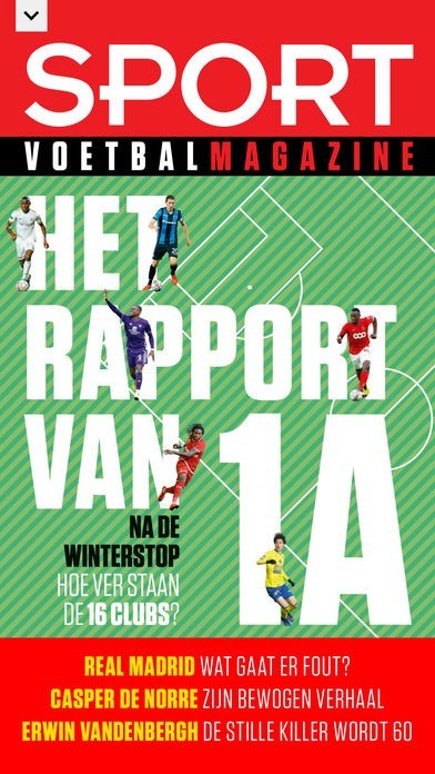 • u leest Sport/Voetbalmagazine ofwel in Magazine lay-out ofwel in de geoptimaliseerde Tablet lay-out of smartphone lay-out.