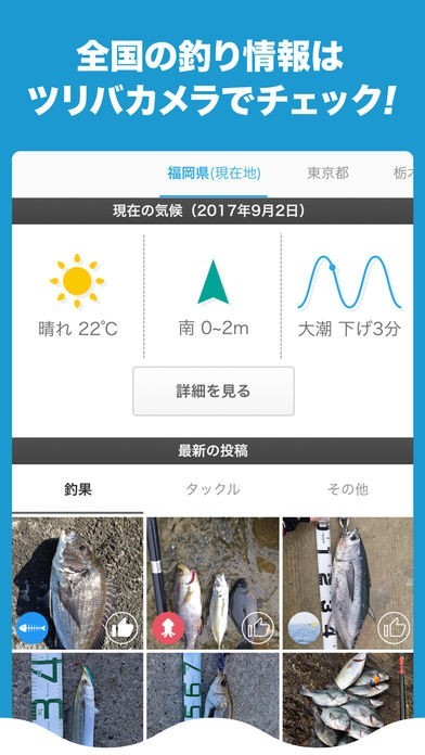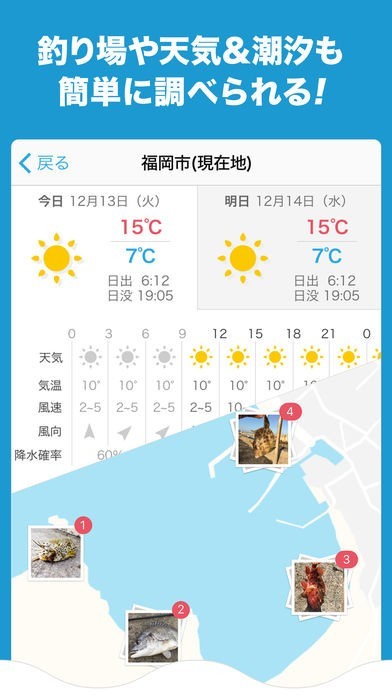 全国の釣り場の天気や釣果がいつでもチェックできる