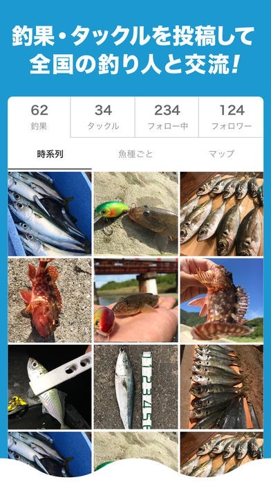 気になるユーザーはフォロー機能でチェック!釣果やタックルの管理機能で釣った魚の記録も楽々管理!
