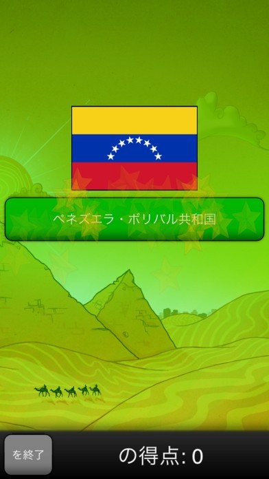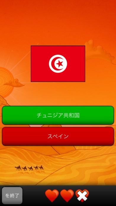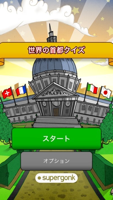 クイズが国名と国旗表示されるので、画面上に表示される3択から適当な首都名をタップし答えるだけ!