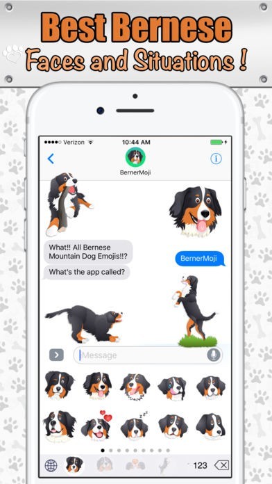 This is the ultimate Bernese Lovers Emoji and Sticker app. Just check out the screen shots.