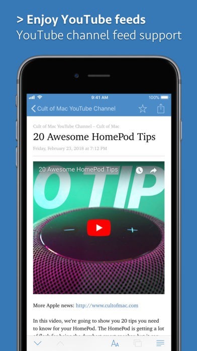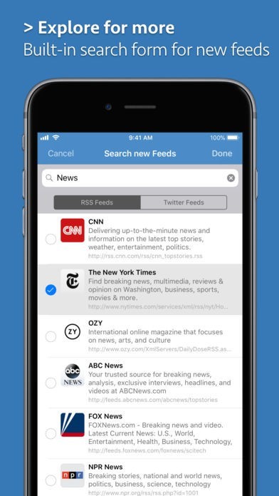 「News Explorer」を使えば、RSSやJSON、YouTubeなどネット上の様々なサービスにまとめてログインすることができます。アプリの移動を行う必要がありません。