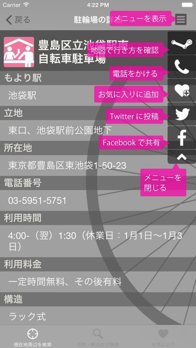 駐輪場の情報量も多く、検索したらすぐにヒットするので困らなくなりました。