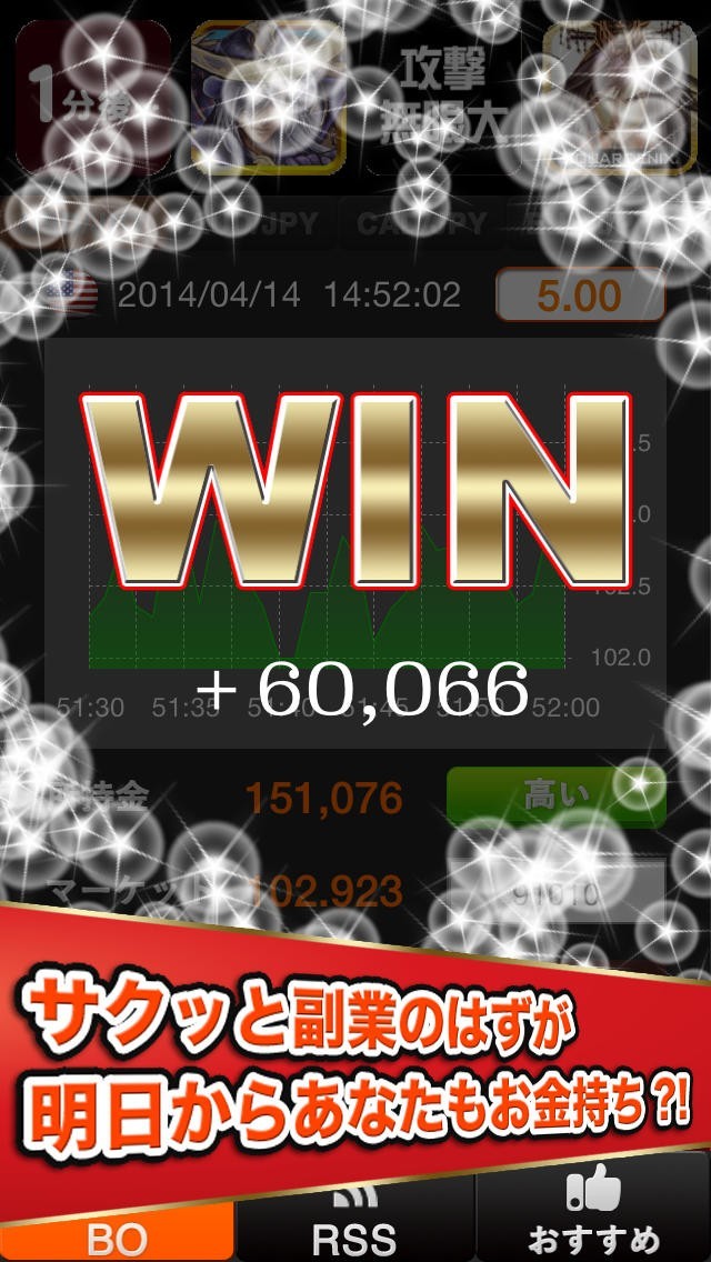 コツコツお金を稼ぐよりも短い時間で一気に大金を稼ぎたいという人におすすめなのが「秒速で稼ぐ」アプリです。このアプリは今話題沸騰中のバイナリーオプションのシミュレーションをすることができるように、収入源としてバイナリーオプションに興味があるけれどどのようにしたらいいのかわからないという人は是非ダウンロードしてシミュレーションをすることをおススメします。バイナリーオプションが自分に向いているかどうか、成功するのか、ちょっと試してみるのに最適なアプリです。