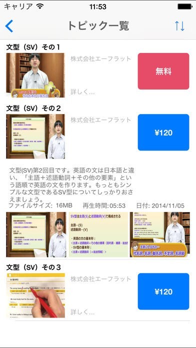 ・アプリインストール後、受講したいレッスンのトピックを選んで個別にダウンロード